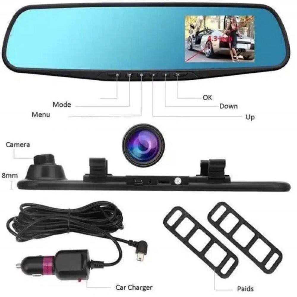 مرايا سياره اماميه مزوده بكاميرا داش كام اماميه وخلفيه 4K
